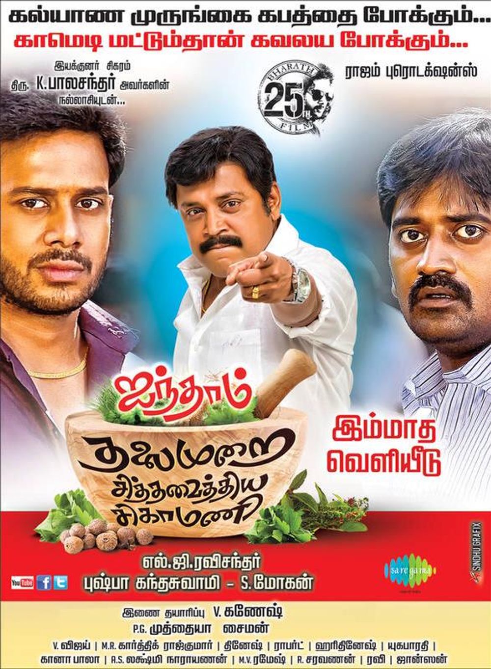 A nice comeback for Bharath in his 25th Film. A good entertainment movie. A movie with couple of messages 1. Education & 2. Siddha. One-stop shop to visit all your favourite & best entertainers in this week end. This movie comes with such a huge casting, you name it. Right from Thambi Ramaiah, Singam Puli, Madhan Babu, etc..etc.. We need to especially appreciate the role of Thambi Ramaiah in this movie. A good movie to watch with your family this weekend.