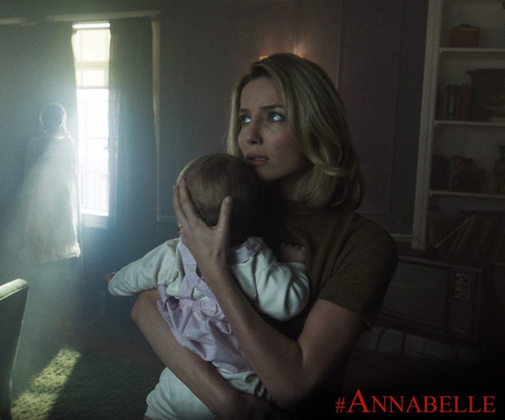 we mostly get in Annabelle is what we've gotten from so many other horror films: creaking floors, funky white-robed figures, home appliances that go off on their own, mysterious writing that shows up in mysterious places