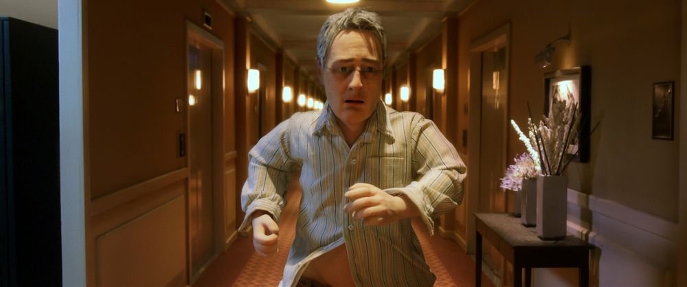 Michael has a nightmare in which his face falls apart and the identical people of the world pursue him, claiming they love him and that he and Lisa cannot be together. The dream inspires Michael to propose that he and Lisa run away and start a new life. She agrees, but her eating habits during breakfast annoy him, and her voice and face begin to transform into everyone else's. During his convention talk, he suffers a breakdown, confessing that he has no one to talk to and ranting about the American government, alienating the audience.
