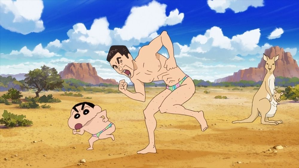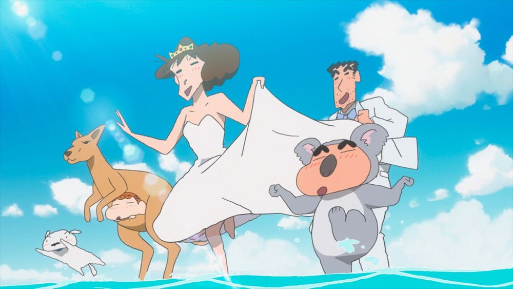Hiroshi and Misae take up an inexpensive and family-friendly holiday package to Australia as they've never been on a honeymoon trip to a foreign county. Upon arrival Hiroshi gets kidnapped which leaves the Nohara family devastated as learn that Hiroshi happens to be the key to a treasure and is targeted by mysterious masked man and treasure hunters from all over the world. Misae and the Nohara family embark on a mission to rescue Hiroshi and solve the mystery of the treasure.