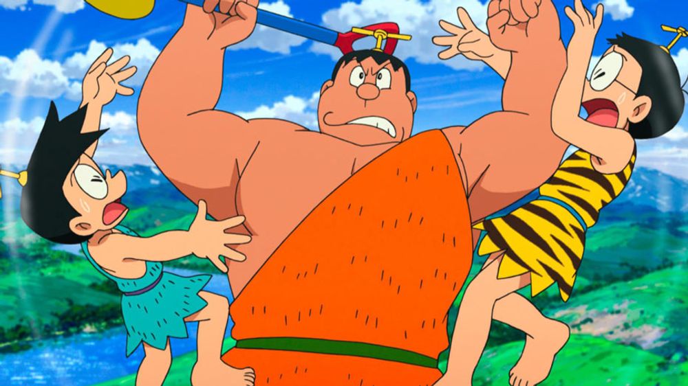 At the same time, Shizuka, Gian, Suneo and Doraemon also want to run away from their homes as they feel their parents have been working them too hard (with the exception of Doraemon, who leaves as the family has been requested to take care of a hamster which Doraemon thinks looks too much like a mouse, an animal he hates). Nobita suggests that they should go back in time to live in a place before humans existed. The group agrees with him and travel to Japan 70,000 years ago.