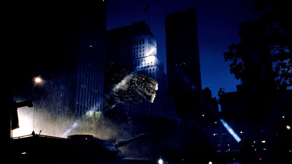 The large reptilian creature dubbed as "Godzilla" by the media, travels to New York City leaving a path of destruction in its wake. The city is evacuated as the military attempts to kill it but fails in an initial attempt. Dr. Tatopoulos later collects a blood sample and learns that Godzilla reproduces asexually and is collecting food for its offspring. Aspiring journalist and ex-girlfriend of Dr. Tatopoulos, Audrey Timmonds (Pitillo), uncovers a classified tape in his provisional military tent which concerns the origins of the lizard. Her superior Charles Caiman (Shearer) however, declares the tape as his own media discovery.
