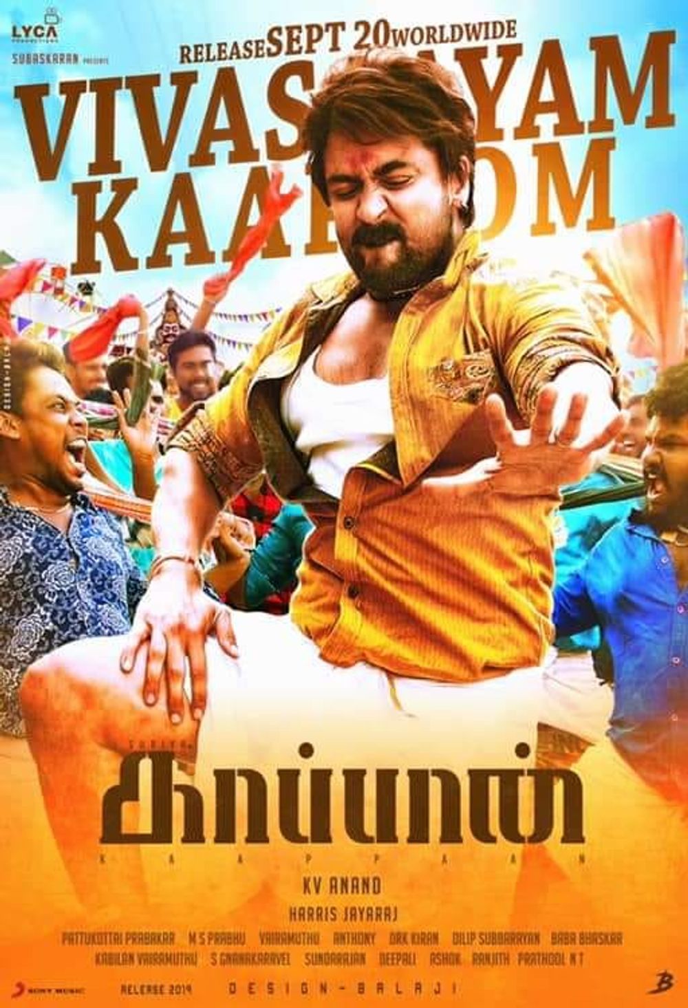 Crew: KV Anand (Director), Abhinandan Ramanujam (Director of Photography), MS Prabhu (Director of Photography), Harris Jayaraj (Music Director)