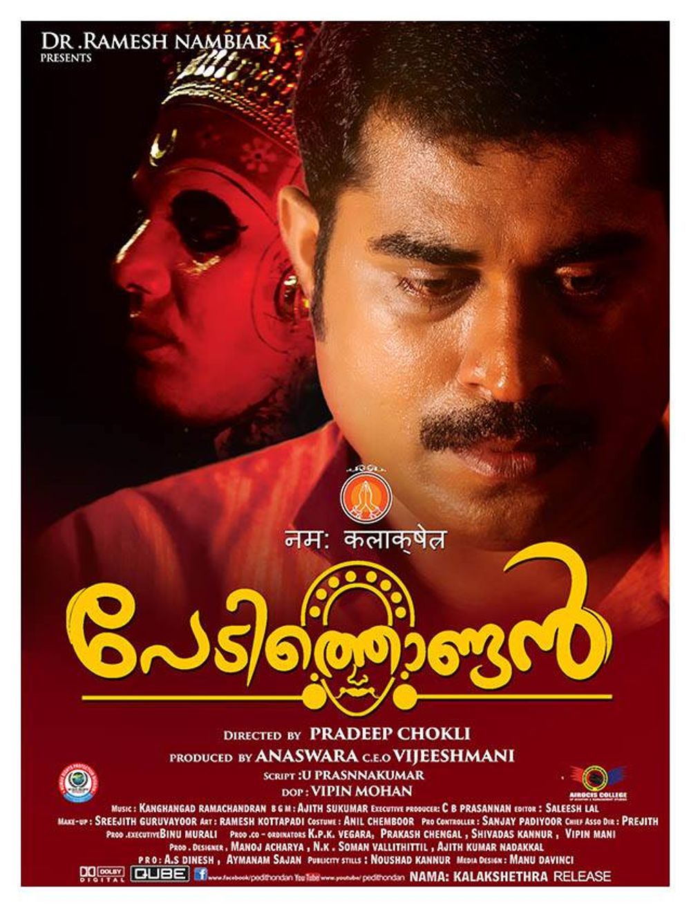 Set in the rural locales of Malabar, 'Pedithondan' is the story of a young man Rajeev who fears fire and the traditional rituals like Theyyam. Rajeev is loved by all the villagers because of his innocence and sincere love towards others. Though born to the land known for Theyyam, he is very much afraid of Theyyam and related rituals. He is so preoccupied with this fear that he even absconds from the village because of it. Rajeev's elopement creates issues in the village.According to their practiced traditions and customs, Rajeev has to participate in the Koodiyattam donning the Theyyam attire. If this does not happen, the Kavu and the related customs will all cease to exist. This will challenge even the existence of Nature and the people who depends on it.