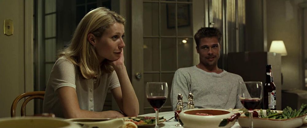 Somerset theorizes that a serial killer is basing his crimes on the Seven Deadly Sins, with five more to go. To give Mills and Somerset a chance to get along with each other, Mills's wife, Tracy Mills (Gwyneth Paltrow) invites Somerset over for dinner. While they are eating, a train passes by on the track nearby, making the building and all its contents and inhabitants tremble: the couple mention that that's why the realtor was so nervous for them to see the apartment quickly.