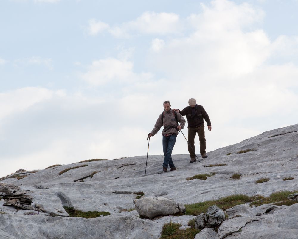 An old man who refuses to die in hospital gets on his scooter and goes up to the place in the mountains where his grandfather took him as a child in search of fossils. His son is compelled and obliged to go after him.