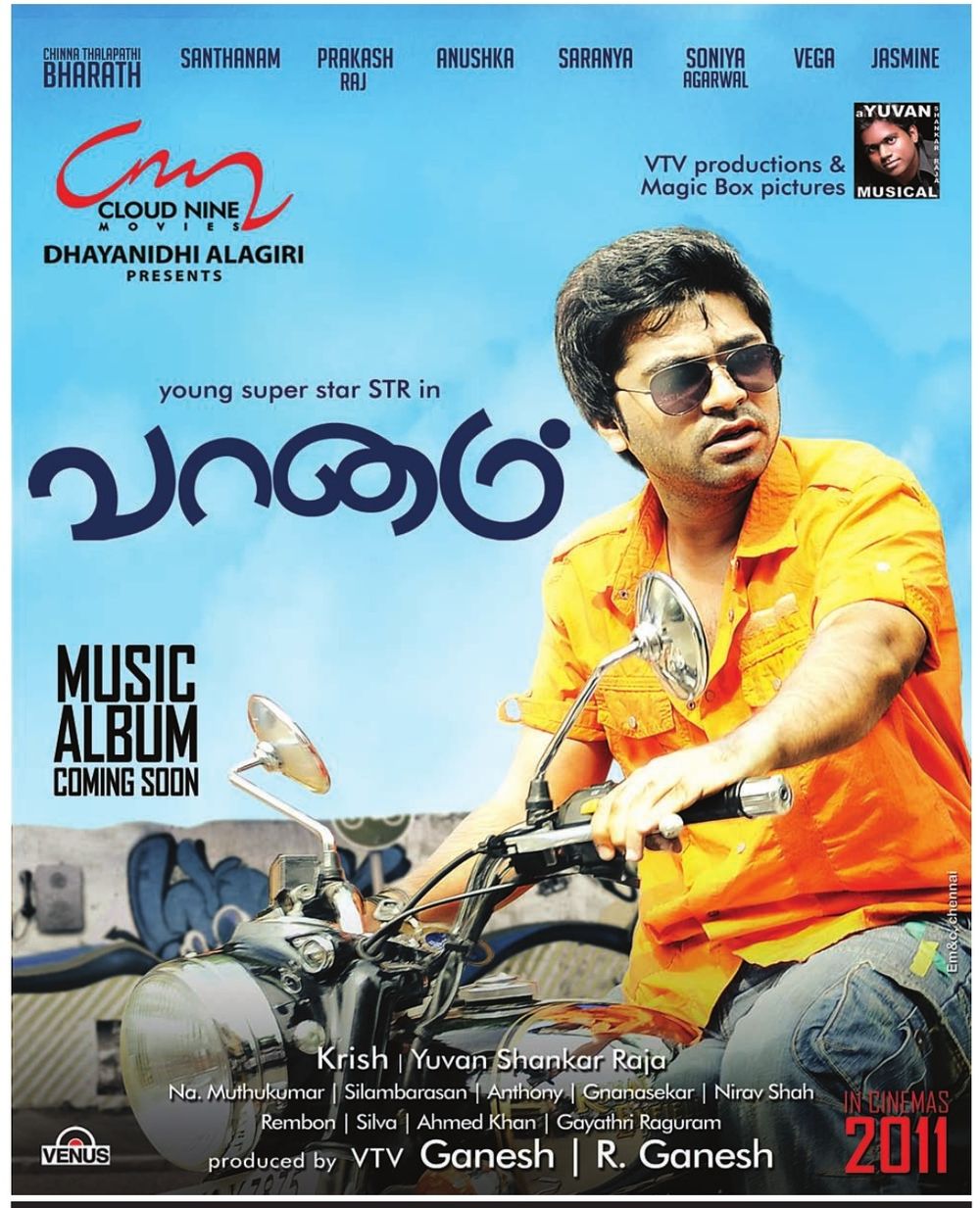 Cable Raja (Simbu) who works as a cable operator is a happy go lucky chap who aspires to become rich by marrying a wealthy girl Pooja (Jasmine). A sex worker Saroja (Anushka), who has escaped from a brothel house, plans to lead a life on her own terms. Bharath Chakravarthy (Bharath) who is not interested in joining the army, although he hails from a family with that background, aims to become a famous rock star. Rahim (Prakash Raj) and his wife Zara (Sonia) become victims of discrimination for being an inter-religious couple, causing them to make plans of leaving India. Lakshmi (Saranya Ponvannan) is desperate to get funds, for her son's studies and also has some debts to be cleared.