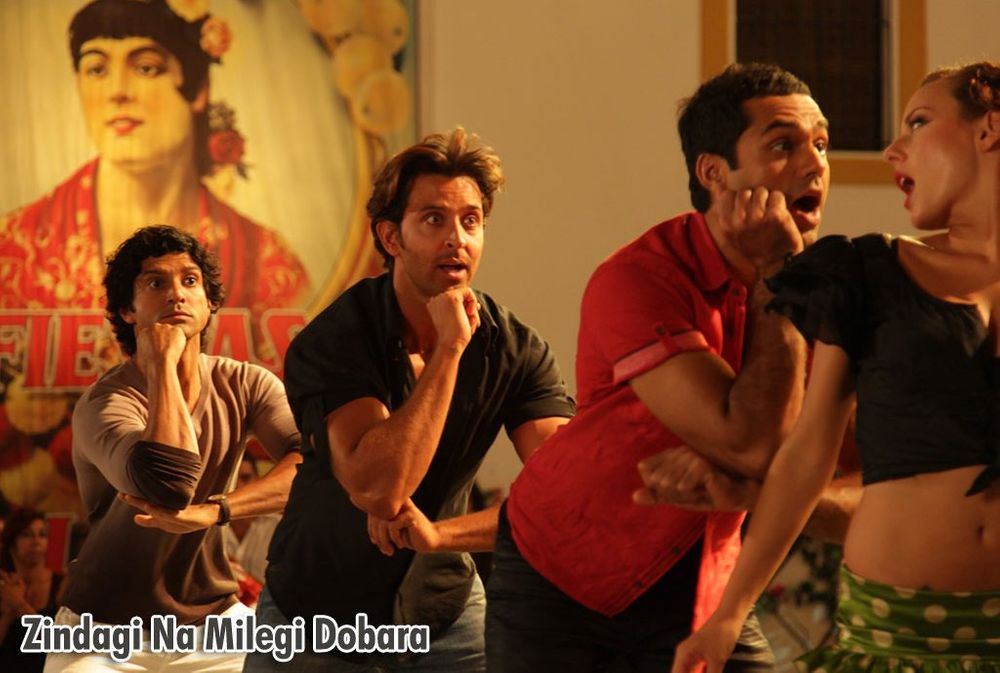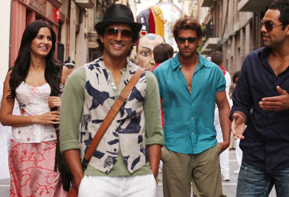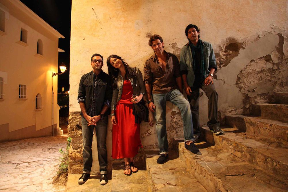 This contemporary coming-of-age relationship drama sparks off with Kabir (Abhay Deol) proposing to Natasha (Kalki Koechlin). Their families meet at the engagement party where Natasha learns that Kabir is planning a three-week bachelor road trip to Spain with his school friends Imran (Farhan Akhtar) and Arjun (Hrithik Roshan). Kabir explains that the three have a long-standing pact, and that during the road trip, each of them will have to pick an adventure sport which all three will try together.